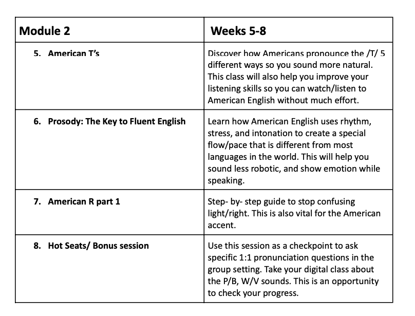 Master the essential sounds and rhythm of the American accent to build a strong foundation for clear, confident English in 12 weeks!